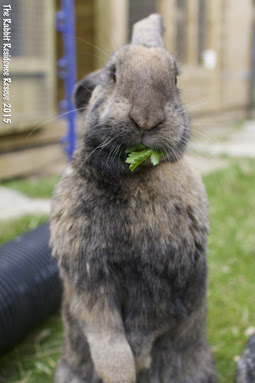 A lone lagomorph leans forwards with curious interest as the boundary of his home is crossed - a familiar visitor with a familiar and nourishing bounty. He fixes the visitor with a steely glare. The visitor bows their head to the height of this beautiful and majestic rabbit, leaning in, and in response the small furry resident seems to communicate something back...